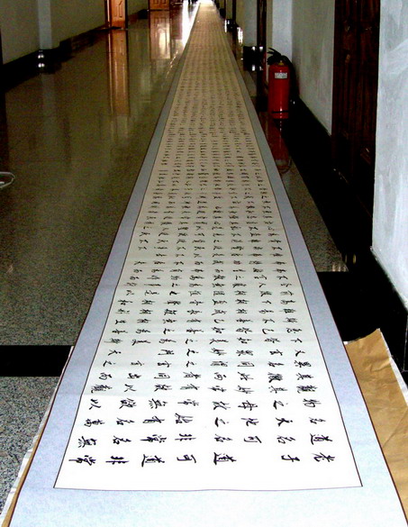 赵忠山教授的书法长卷《道德经》,长56.8米,宽0.70米,是我省目前最长的书法长卷。