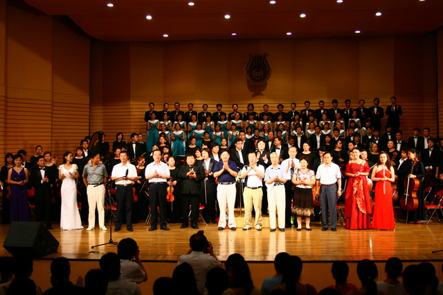 音乐会结束后,省、市领导登台向演员们表示慰问并合影。