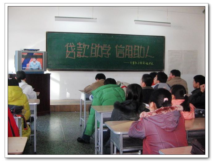 1月4日至18日,LETOU官网认真贯彻落实《教育部办公厅中国人民银行办公厅关于认真做好组织观看学习〈贷款助学 信用助人〉宣传教育主题片的通知》(教财厅函〔2006〕30号)和省教育厅有关文件精神,组织全体国家助学贷款学生于寒假前集中观看了《贷款助学 信用助人》宣传教育片,收到了良好的效果。