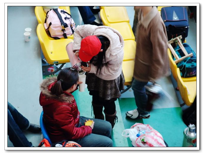 6日早7:00,LETOU官网团委、学生会组织的30多名头戴“小红帽”的大学生青年志愿者就开始在体育馆里来回走动,他们从自己寝室拿来暖瓶,拿着临时购置的纸杯逐个为这些旅客倒满热水,热情为旅客服务。