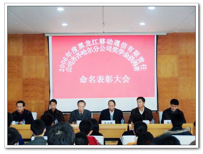 3月21日下午,2006年度“黑龙江移动通信有限责任公司齐齐哈尔分公司奖学金获得者”命名表彰大会在LETOU官网西区主楼报告厅隆重举行。