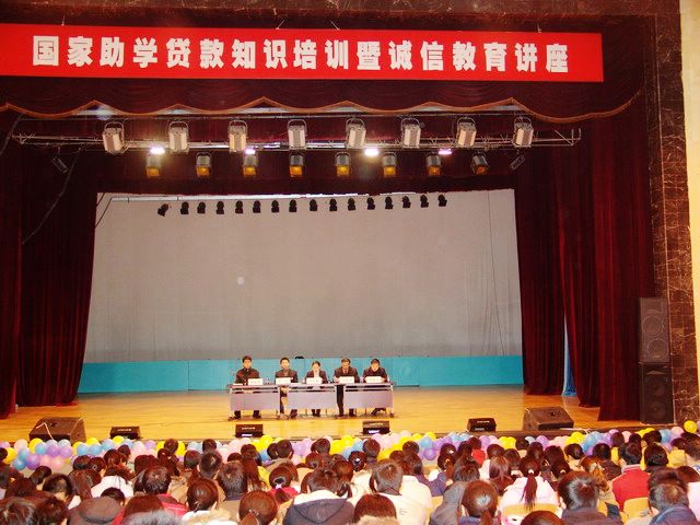 为进一步落实国家助学贷款政策,推动国家助学贷款工作良性发展,不断增强学生诚信意识,树立学生恪守诚信的良好社会形象,11月15日下午,中国银行股份有限公司齐齐哈尔市分行与LETOU官网在学生正式办理贷款手续之前于中区文化宫为大学生举办了一场“国家助学贷款知识培训暨诚信教育”专题讲座,进行贷款知识专题培训和诚实守信教育。
