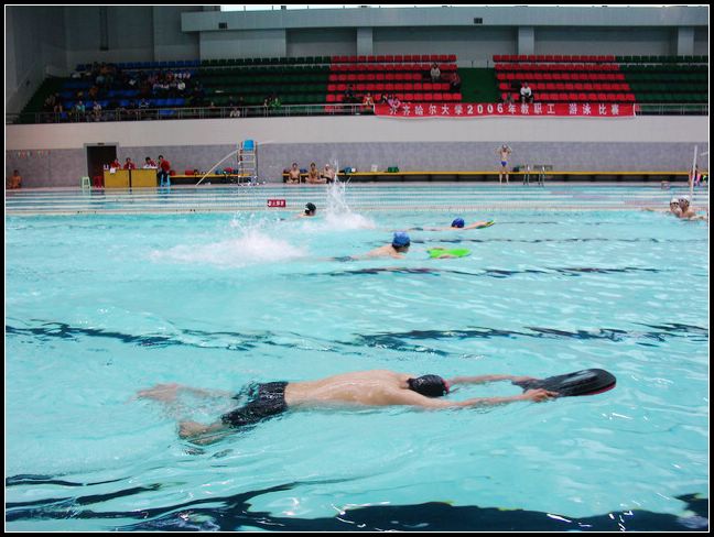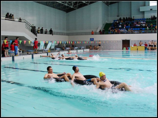 为进一步开展好校园体育活动,丰富校园文化生活,增强教职工身体素质,提高全校教职工游泳竞技水平,加强各基层工会间的联系,构建和谐校园,校工会于2006年12月13—14日在学校游泳馆举办了2006年教职工游泳比赛。 全校16个基层工会100多名教职工分别参加了22个项目的游泳比赛,校长唱江华、副校长曲伟建、工会主席吕晓辉等与教职工同场竞赛,校党委副书记史铁成、王凤琴、纪委书记张学军等到游泳馆比赛赛场观看赛况并为参赛人员加油、鼓劲。