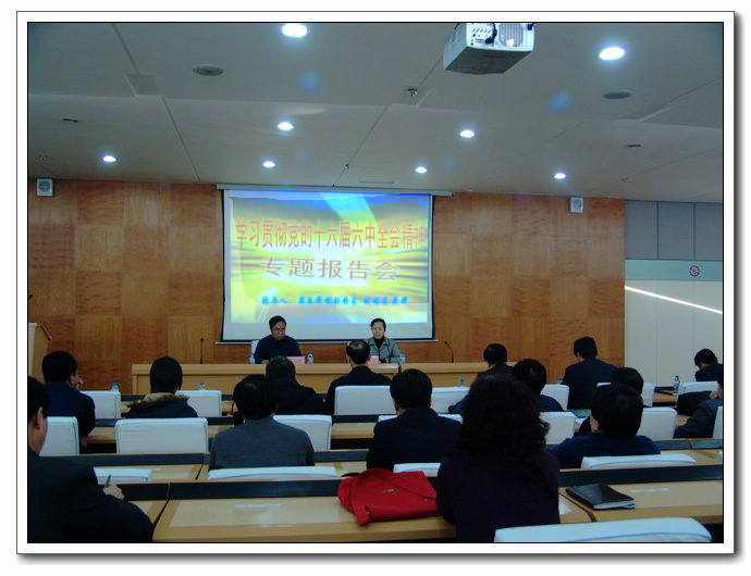 12月27日下午,学习贯彻党的十六届六中全会精神专题报告会在西区教学楼学术报告厅举行。