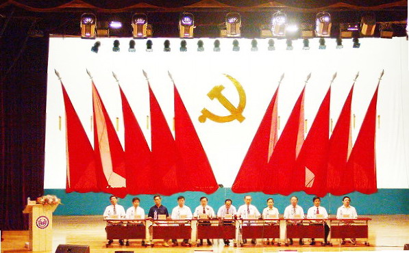 校领导陈承贵、唱江华、史铁成、王凤琴、张学军、曲伟建、姜守训、张忠恒、郑喜群、邓启刚、吕晓辉等出席,全校千余名党员代表欢聚一堂,共同庆祝党的生日。