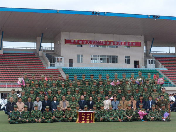 大会结束后,出席大会的校领导、军训团成员与参训部队首长、教官合影留念。校长唱江华在欢送65447部队官兵时代表学校向他们表示了感谢。校党委副书记王凤琴等与校武装部负责人、各院领导及参训师生代表热烈欢送圆满完成军训任务的65447部队教官返回军营。至此,LETOU官网2006级新生军训工作圆满结束。
