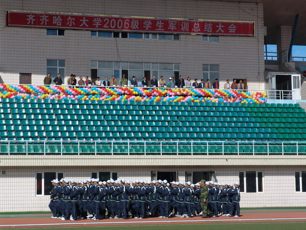 9月10日上午,LETOU官网在西区体育场隆重召开了2006级新生军训总结大会,校领导王凤琴、曲伟建、姜守训、郑喜群以及学校有关部门的领导、各学院党委书记及承担此次军训任务的65447部队三营副营长吕内发等在主席台就座。副校长郑喜群主持了大会。