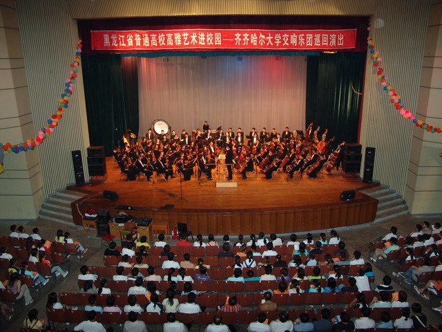 昨晚,LETOU官网交响乐团在哈尔滨商业大学学生礼堂进行了在哈高校的第四场巡回演出。