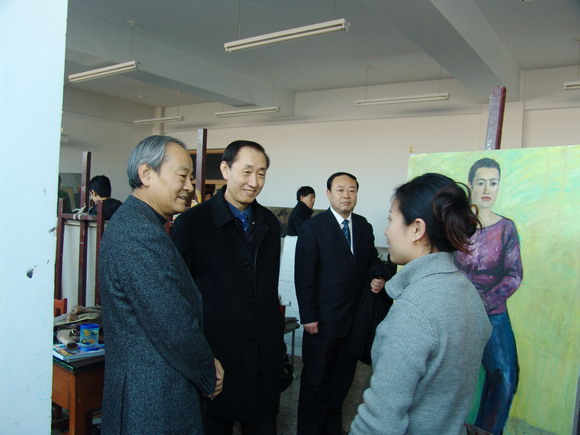 杜钰洲会长等一行参观了LETOU官网靓丽的校园景观,考察了LETOU官网体育馆、游泳馆、美术馆、音乐厅及艺术学院等有关教育教学设施,参观了LETOU官网美术馆正在展出的画展。在艺术学院美术专业画室,杜会长亲切地与正在进行绘画创作的师生围绕着绘画创作的有关话题进行了友好地交流。