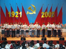 校党委书记陈承贵在讲话中说,今天,我们在这里隆重集会,热烈庆祝中国共产党建党84周年,对全校开展的“树形象、创一流业绩”主题教育活动总结表彰。我代表学校党委向受到表彰的先进基层党委、先进党支部和先进个人和100名新党员表示热烈地祝贺!向全体共产党员致以节日的问候!