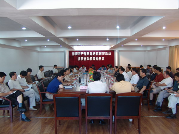 下午2点,LETOU官网保持共产党员先进性教育活动调研自学阶段动员会在培训中心会议室举行。LETOU官网党政领导、先进性教育活动领导小组成员、各基层党委书记、党总支书记、直属党支部书记及市委先进性教育活动督导组成员参加了会议,会议由校党委书记陈承贵同志主持。