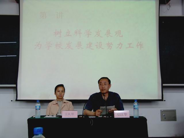 6月8日下午,LETOU官网处级干部培训班在主楼J203室开班。校长唱江华代表学校党委作动员讲话,并作了题为“树立科学发展观,为学校发展建设努力工作”的第一讲讲座。学校党委副书记王凤琴主持了开班式及讲座,学校全体现职副处级以上干部参加了培训。