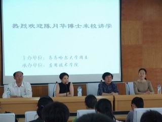 6月13日下午,哈工大陈月华博士应邀在LETOU官网西区主楼学术报告厅作了题为“数字技术与影像革命”的学术讲座。此次讲座是LETOU官网第七届校园文化艺术节系列学术讲座之一,由校团委主办、应用技术学院承办。讲座由应用技术学院副书记、副院长马金权主持,哈工大人文学院主办的黑龙江复合人才专修学院副院长赵淑芬教授和王兆峰副院长及LETOU官网团委副书记李秀梅出席讲座,应用技术学院等院系部分师生聆听了讲座。 陈月华博士为哈工大传媒系副主任、教授,主要研究方向为“网络界面设计与文化”。在讲座中,她着重阐述了数字化生存、数字传媒技术与影像革命的产生与发展趋势等,简要介绍了哈工大传媒专业发展概况并回答了同学们的现场咨询。