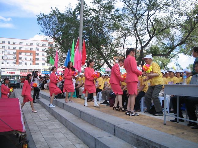 新老交流中薪火相传。参加此次广场文艺演出的离退休党员100余名,其中年龄最高者已达82岁;部分老党员曾亲身参加过抗日战争、解放战争和抗美援朝战争,为国家的独立、人民的解放和世界的和平建立了功勋;在和平建设时期,他们又为学校的创建、改革与发展做出了贡献。在文艺演出前。人文学院的学生代表为他们敬献了鲜 花,表达了当代大学生对老一辈革命者的崇高敬意;离退休老党员刘吉平也在演出中寄语青年学子要“努力学习,创出佳绩,为学校、为家庭争光!”,表达了老一辈对青年大学生的殷切希望。