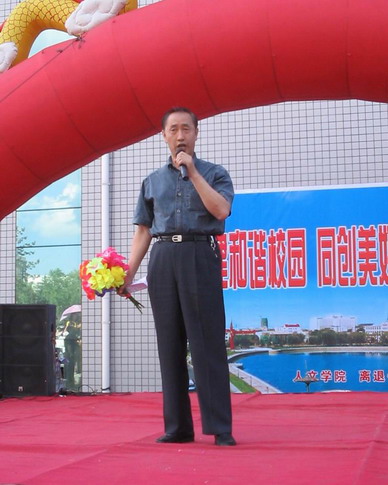 载歌载舞中共创和谐。校长唱江华教授文艺演出即席讲话中向为民族独立和解放做出卓越贡献的离退休老同志深情致敬,并倾情演唱了一首深受离退休老同志喜爱的歌曲《夕阳红》,祝愿他们夕阳无限好,将本次文艺演出推向了高潮。老干部合唱团纵情歌唱不朽的战歌,倾情演唱的铿锵有力的革命歌曲《保卫黄河》、《革命人永远是年轻》、《没有共产党就没有新中国》等以及他们真诚的爱国情怀深深地感染着每一名现场观众;离退休老党员刘吉平一段《上天台》的精彩唱腔演绎了京剧国粹艺术的独特魅力;人文学院学生演唱的校园歌曲与舞蹈充分展现了当代青年学子的风采,学生合唱团演唱的《在太行山上》寄托着他们爱国情怀;校园短剧《丁香花开》则表达了当代大学生择业时的价值取向,体现了当代大学生志愿服务基层,到祖国和人民最需要的地方去的人生理想信念。最后,大型广场文艺演出在校领导与广大师生一起高唱的《歌唱祖国》旋律中圆满结束。