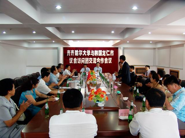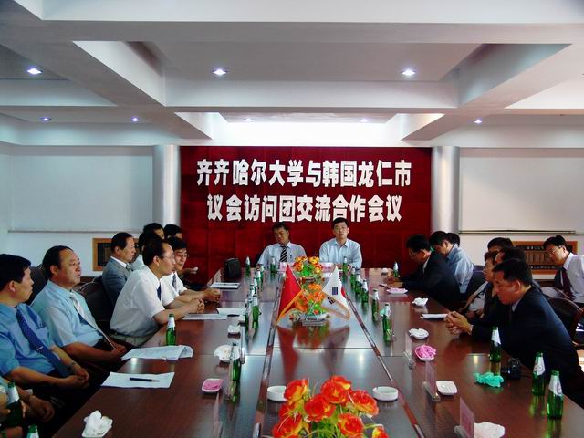 在LETOU官网培训中心会议室,宾主双方举行了会谈。校长唱江华代表学校对韩国客人来访表示欢迎,并简要介绍了学校发展概况;金顺庆先生也向LETOU官网领导简要介绍了韩国龙仁市的有关情况,双方在亲切友好的氛围中就有关交流与合作事宜交换了意见。