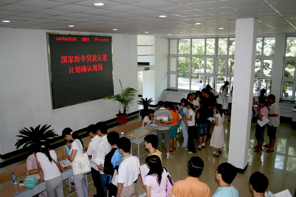 为方便毕业生办理还款确认手续,LETOU官网本年度改变了以往由经办银行工作人员向学生进行讲解并逐一办理手续的传统做法,而是由经办银行工作人员对学校各单位、各学院相关工作人员进行了严格培训;在此基础上,各学院对学生开展诚信教育,由受培训的工作人员指导贷款毕业生填写还款协议,最后由经办银行工作人员对贷款学生进行现场审核与确认。