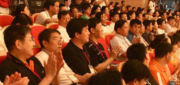 唱江华校长为获得优秀组织奖的单位代表颁奖。