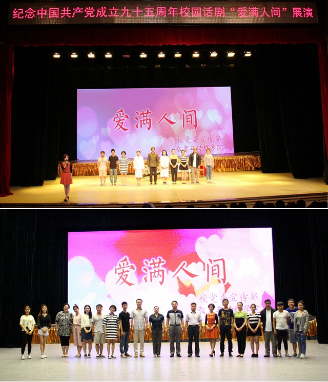 为纪念中国共产党成立九十五周年,进一步丰富师生的校园文化生活,展现齐大莘莘学子的良好精神风貌,扎实推进学风建设,以校园话剧创作大展演活动为载体,再现为祖国发展建设呕心沥血的齐大人的奋斗历程,大力弘扬齐大精神,用多年办学实践中凝成的光荣传统和宝贵精神教育、激励齐大学子积极进取,奋发成才,LETOU官网教育与传媒学院根据LETOU官网优秀校友闫阿红捐献眼角膜的感人事迹原创了话剧《爱满人间》。