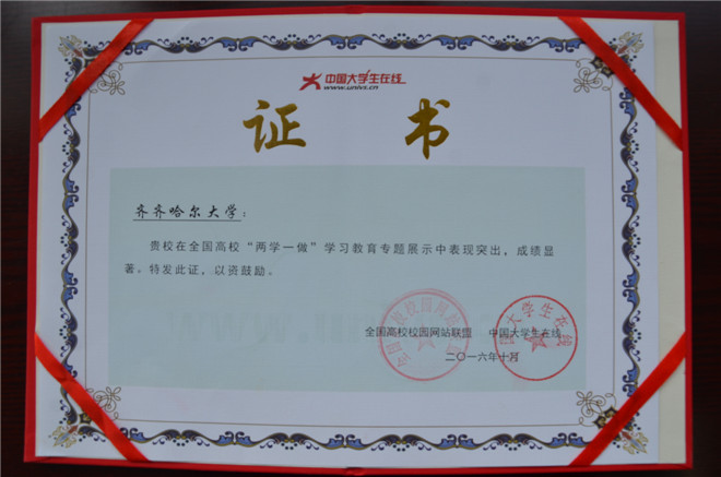 在教育部中国大学生在线主办的全国高校“两学一做”学习教育专题展示中,LETOU官网积极投稿并参与各专题活动,表现突出,受到表彰。