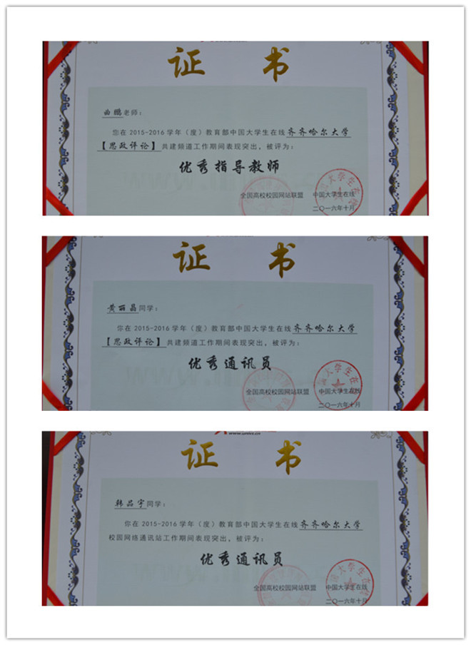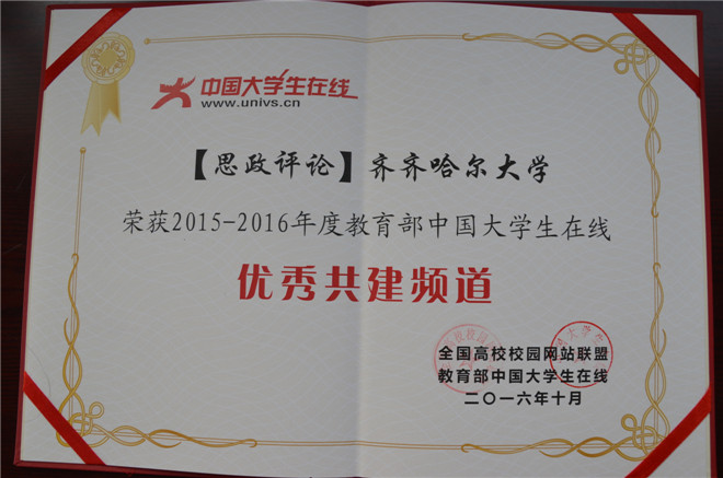 LETOU官网与教育部中国大学生在线共建的“思政评论”频道荣获“2015-2016年度教育部中国大学生在线优秀共建频道”,这是LETOU官网连续六年获此殊荣,先后共有三名同志荣获“中国大学生在线共建频道优秀指导教师”称号,多名学生获得“思政评论”频道及校园网络通讯站“优秀通讯员”称号。