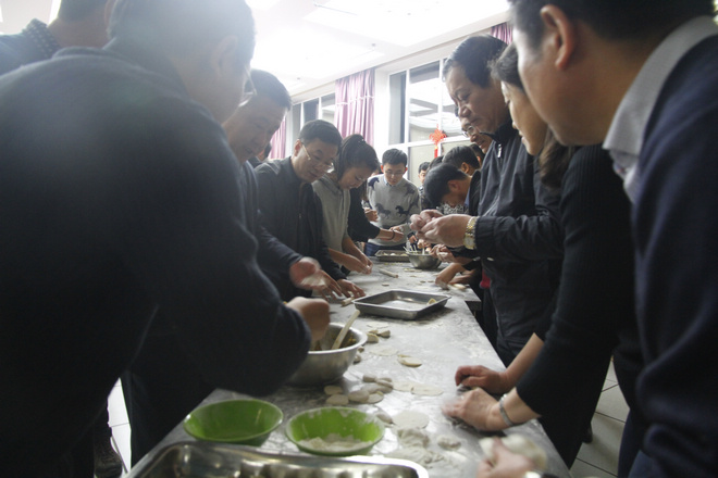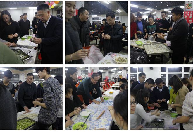 傍晚时分,华灯初上,中区食堂热闹非凡。以“饺香团圆暖冬日 师生情深满校园”为主题的包饺子活动正在这里举行。学校领导、相关职能部门的领导和各学院的领导、班主任、辅导员老师,与广大同学一起包饺子迎新年。师生们有的揉面,有的擀皮,有的在包,有的在学,欢乐的气氛感染着现场的每一个人,大家纷纷拿出手机,要留下大学里这一难忘的时刻。一位2016级的新生说,以前都是在家里包饺子迎新年,今年是第一次在学校食堂集体包饺子,感觉更有趣,这一定会成为我们大学校园生活最美好、最温暖的回忆。