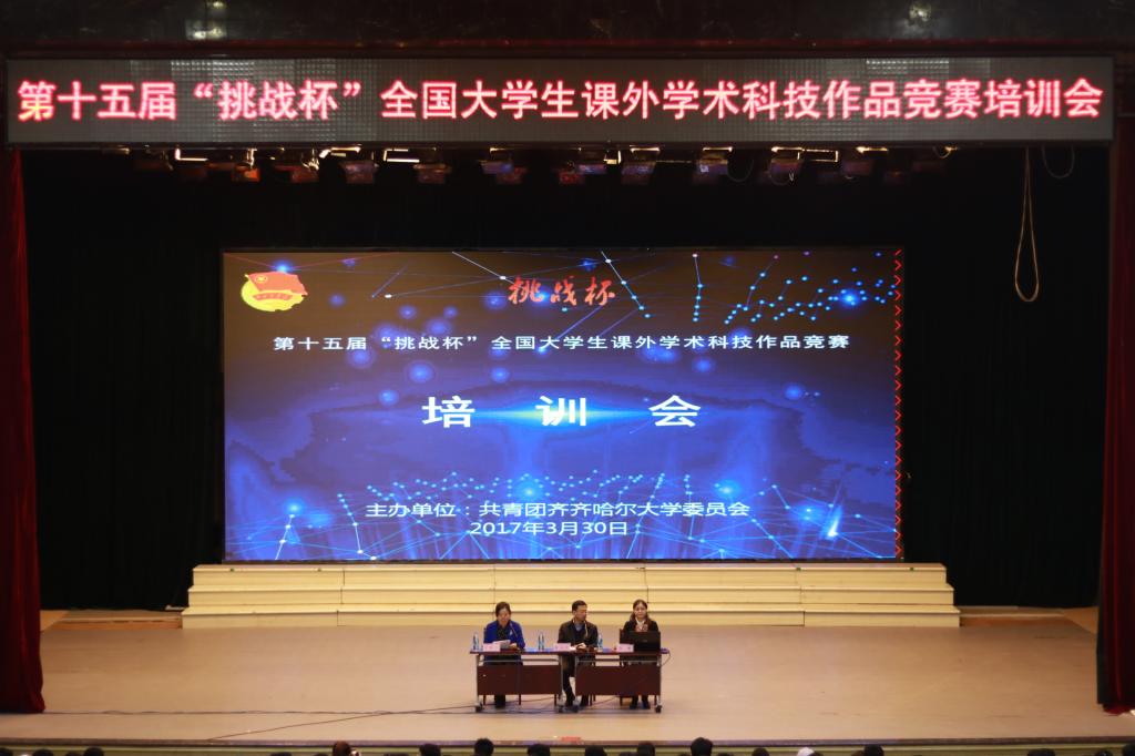 2017年3月30日,LETOU官网第十五届“挑战杯”全国大学生课外学术科技作品竞赛培训会在文化宫举行。校党委副书记盖元臣、校团委副书记苏醒出席培训会,各学院主管学生工作的书记、副书记副院长、主管教学工作的副院长、团委书记、指导教师代表、学生代表,还有来自齐齐哈尔医学院和齐齐哈尔工程学院的老师和学生代表也参加了培训会。