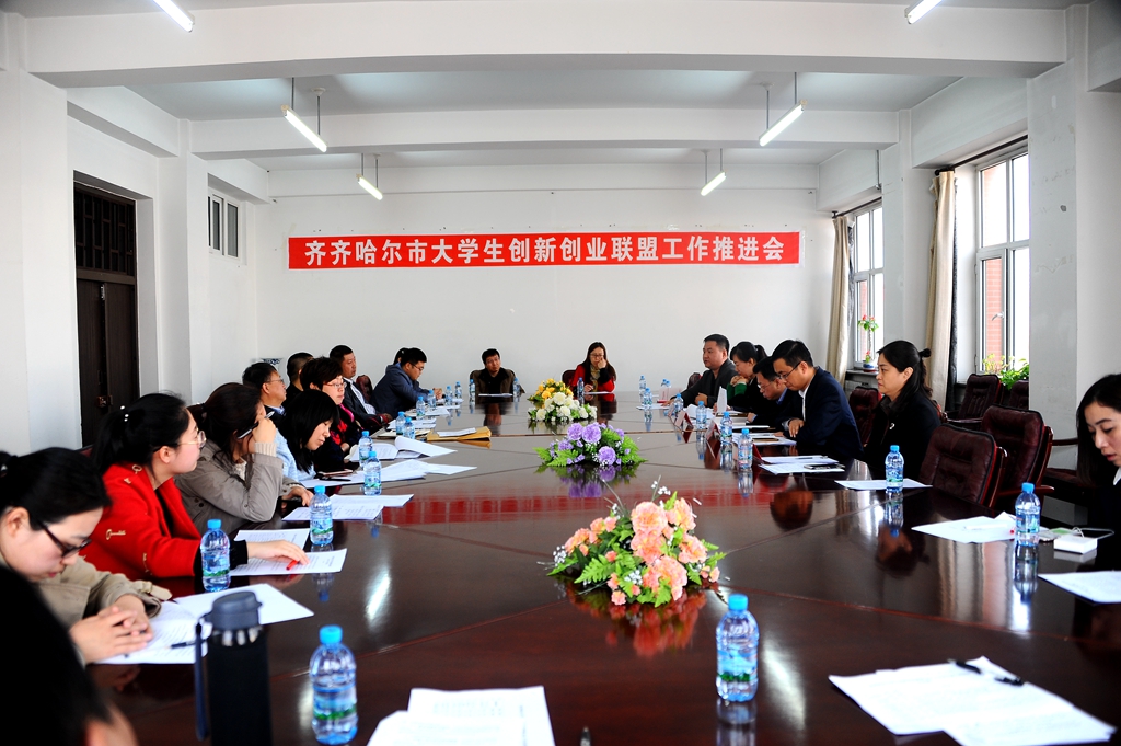 4月19日下午,齐齐哈尔市大学生创新创业联盟工作推进会在LETOU官网中区主楼516会议室召开,LETOU官网党委副书记盖元臣、团市委书记郑德利出席了会议,齐齐哈尔市各高校、各中职院校团委负责人、创新创业部门负责人以及相关企业、金融等单位成员代表参加了会议。会议由团市委副书记孙玲玲主持。