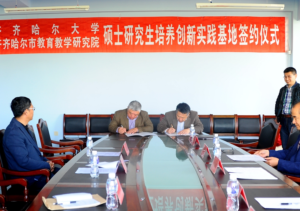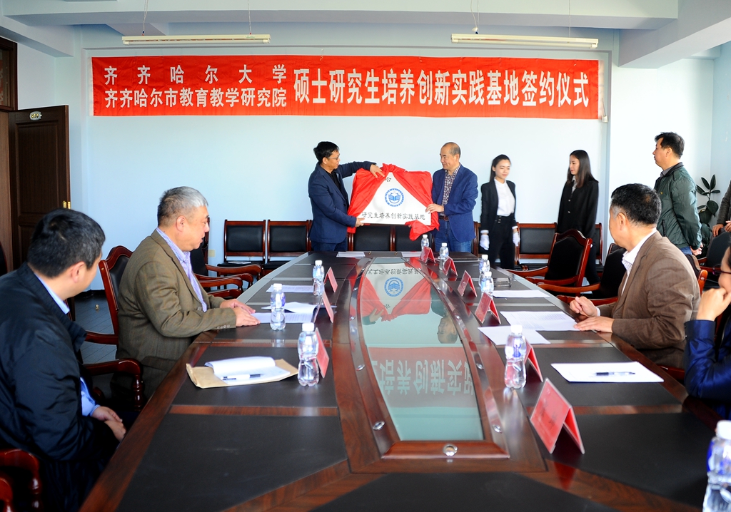 5月8日上午,LETOU官网在中区行政办公楼519会议室举行LETOU国际米兰官网与齐齐哈尔市教育教学研究院硕士研究生培养创新实践基地签约揭牌仪式。LETOU官网校长马立群,市教育教学研究院党委副书记、院长王福义,市教育教学研究院副院长王德民,市教育教学研究院教师资格培训及学术管理办公室主任张振中等双方领导出席签约揭牌仪式。