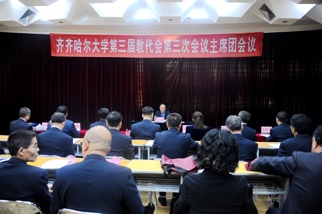 上午8:50,副校长王刚在音乐厅排练厅主持召开了大会主席团第一次全体会议,选举校长马立群、校党委副书记盖元臣担任主席团主席。