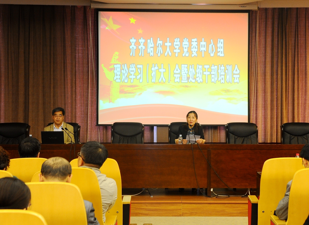 中国共产党黑龙江省第十二次代表大会于4月29日至5月3日在哈尔滨举行。根据中共黑龙江省委《关于认真学习宣传贯彻落实省第十二次党代会精神的通知》要求,按照学校党委《关于认真学习宣传贯彻落实省第十二次党代会精神的通知》的安排和部署,5月25日上午10:00,学校在德润大厦四楼会议室召开校党委中心组理论学习(扩大)会暨全校处级干部培训会,邀请中共齐齐哈尔市委党校教务处处长孙长生教授作省第十二次党代会精神专题辅导报告。校领导及全校副处级以上领导干部参加了培训会,会议由校党委副书记齐宏伟主持。