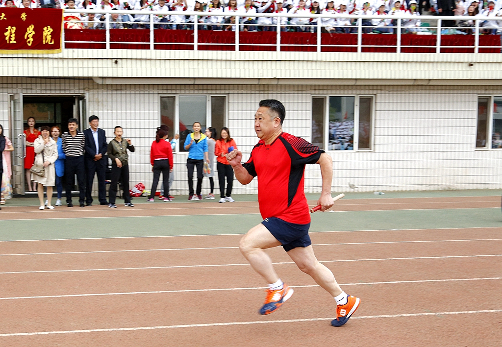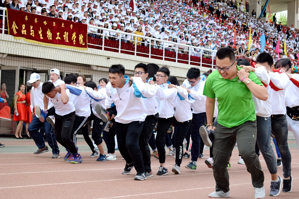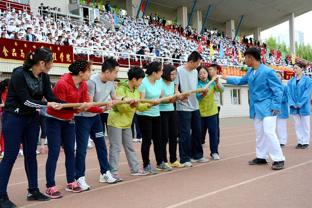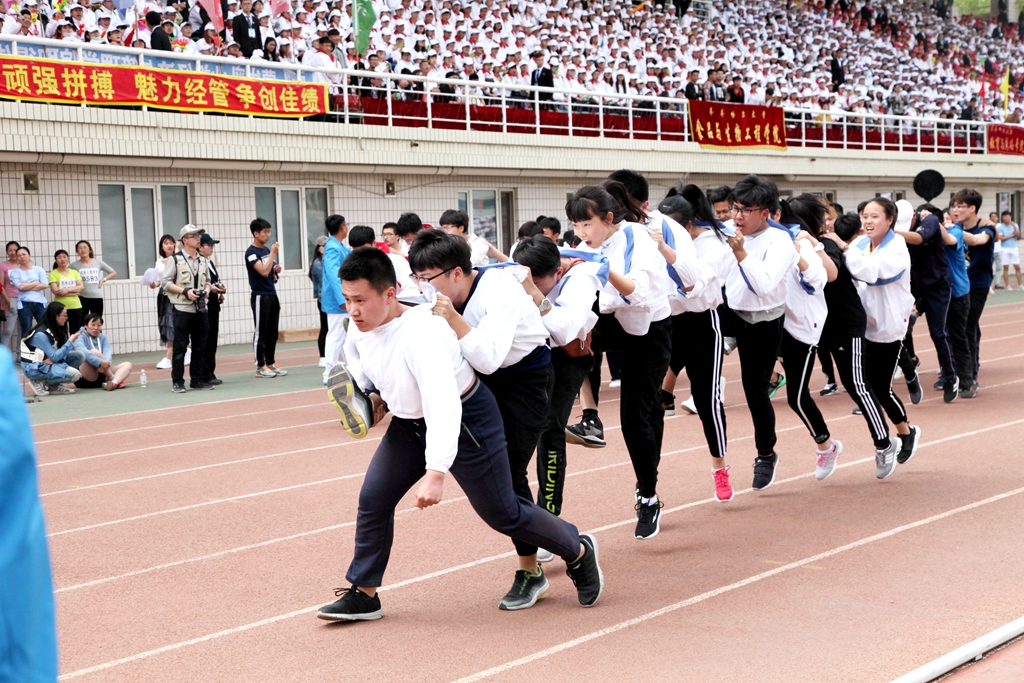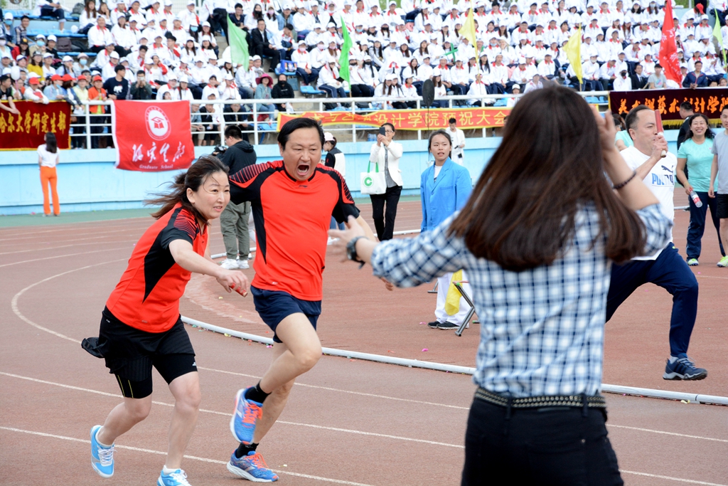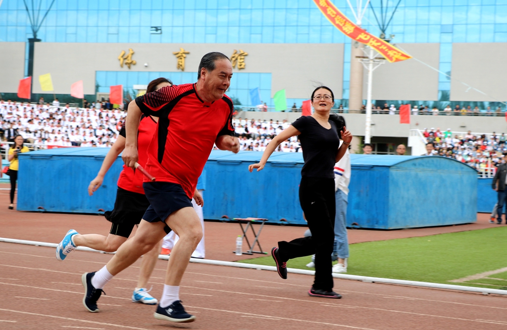 本届田径运动会学生以学院为单位、教工以基层工会为单位,竞技交流,运动健身。在下午举行的领导干部4乘50米接力赛上,校长马立群、校党委副书记齐宏伟、副校长王刚和学校各级领导干部一起参加了比赛,为全校广大师生树立了积极进取、顽强拼搏的榜样。