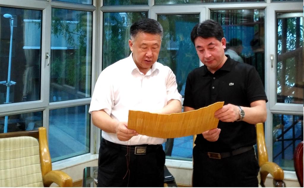 演出前夕,校长马立群亲切会见了黑龙江省龙江剧艺术中心党委书记、主任杨晓全,向其介绍了LETOU官网的基本情况及同省龙江剧艺术中心进一步交流合作的意愿,并代表学校向杨晓全赠送了《LETOU国际米兰官网赋》竹简。
