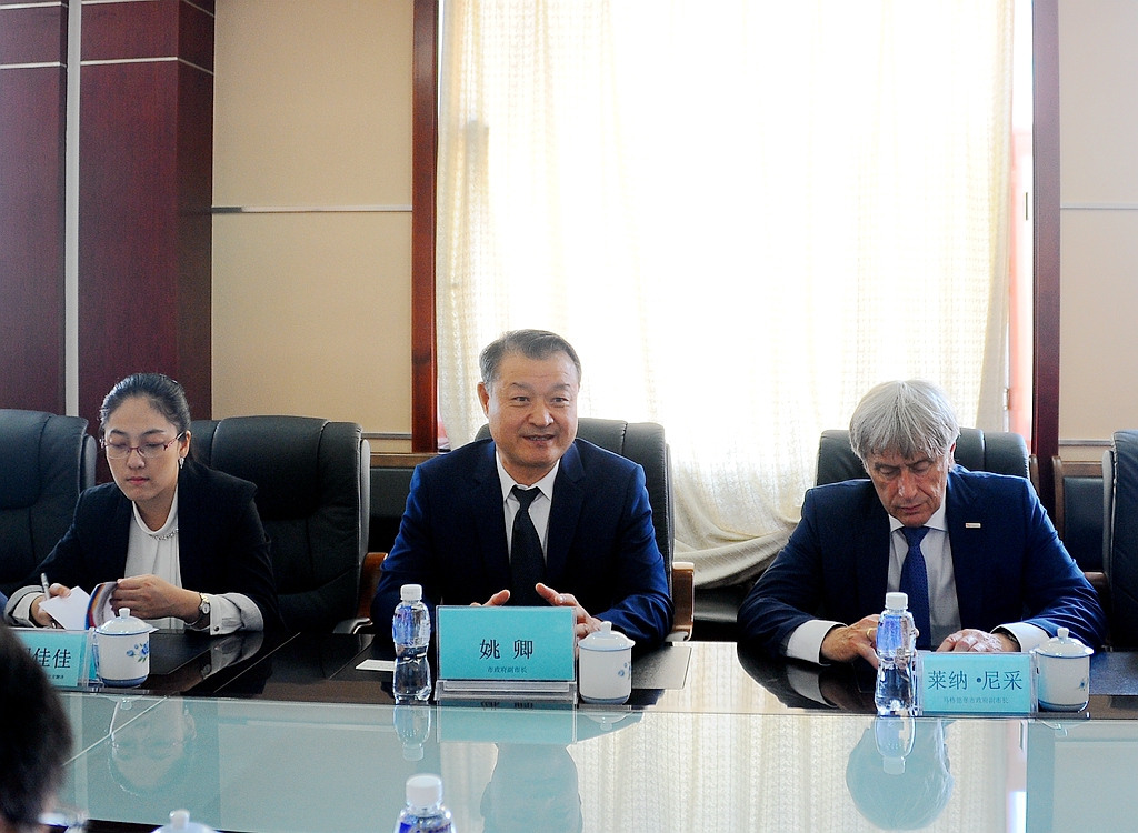 6月15日上午,由德国马格德堡市政府副市长莱纳·尼采、马格德堡大学教育与媒体学院院长弗兰克·布宁、德国全球贸易论坛总裁艾伯哈特·特兰勃等一行5人组成的马格德堡市政府代表团来到LETOU官网访问交流,齐齐哈尔市政府副市长姚卿及市外事侨务接待办公室相关工作人员陪同访问。