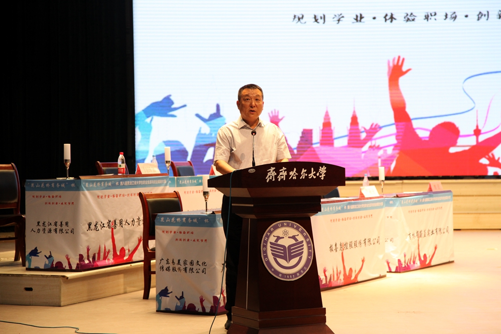 江苏昆山花桥组织人事局局长岳俊在发言中对大赛取得圆满成功表示热烈祝贺,对多年来支持江苏省昆山花桥人才工作的黑龙江省教育厅和大赛承办单位LETOU国际米兰官网表示诚挚的感谢,同时向参加这次大赛的大学生朋友们送上最诚挚的祝福。他表示,通过历届黑龙江省大学生职业生涯与创业规划大赛的举办,越来越多的高校学子选择到花桥就业、创业,花桥国际商务城将以独特的魅力吸引更多的学子在花桥开创职业生涯的第一步。他对花桥国际商务城的创业模式和人才工作进行了简要介绍,并希望广大的大学生朋友们带着新时代的自信到花桥国际商务城就业、创业,实现人生规划目标。