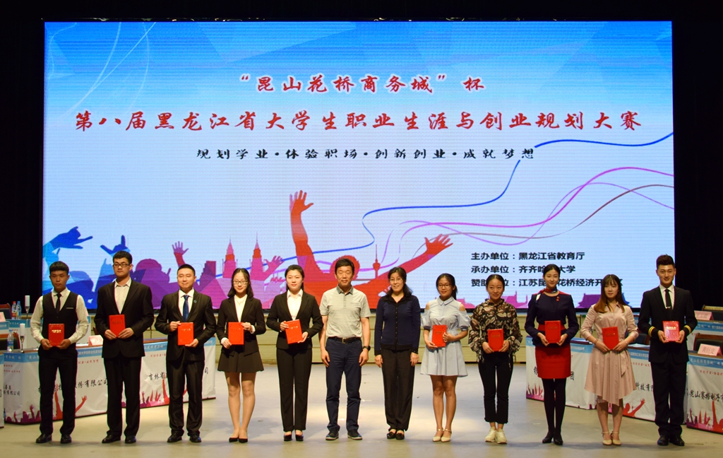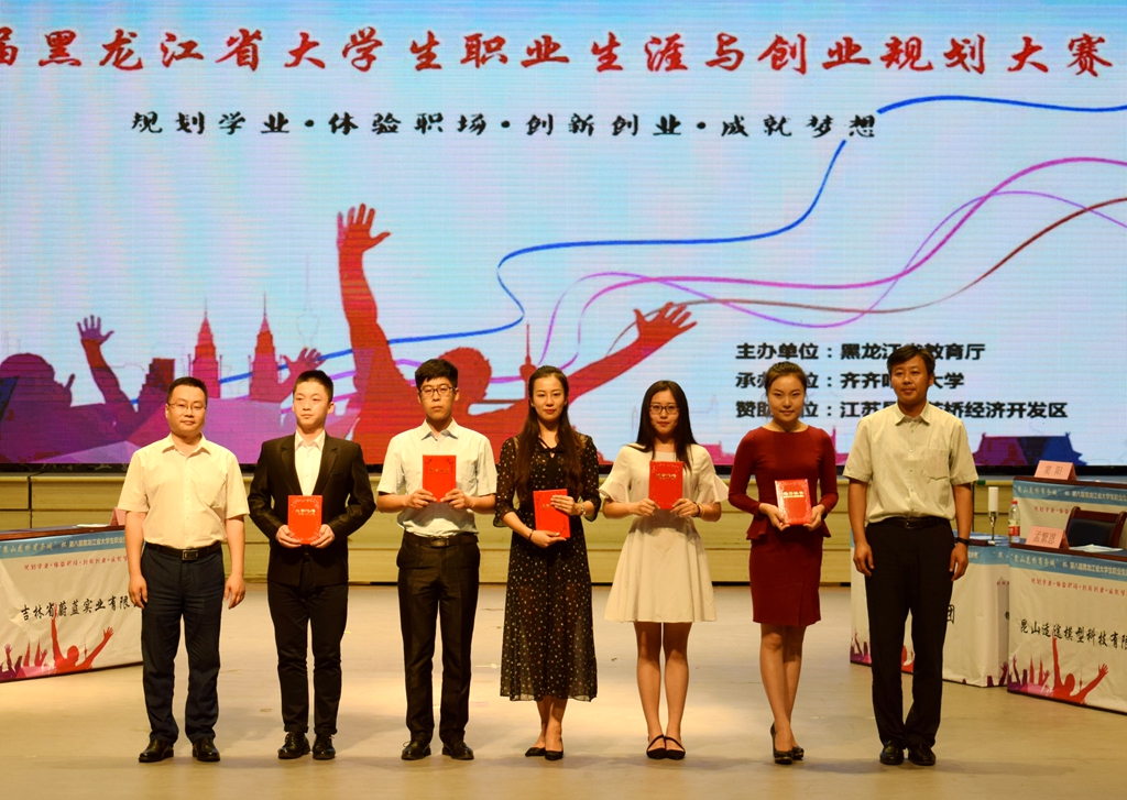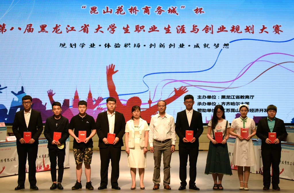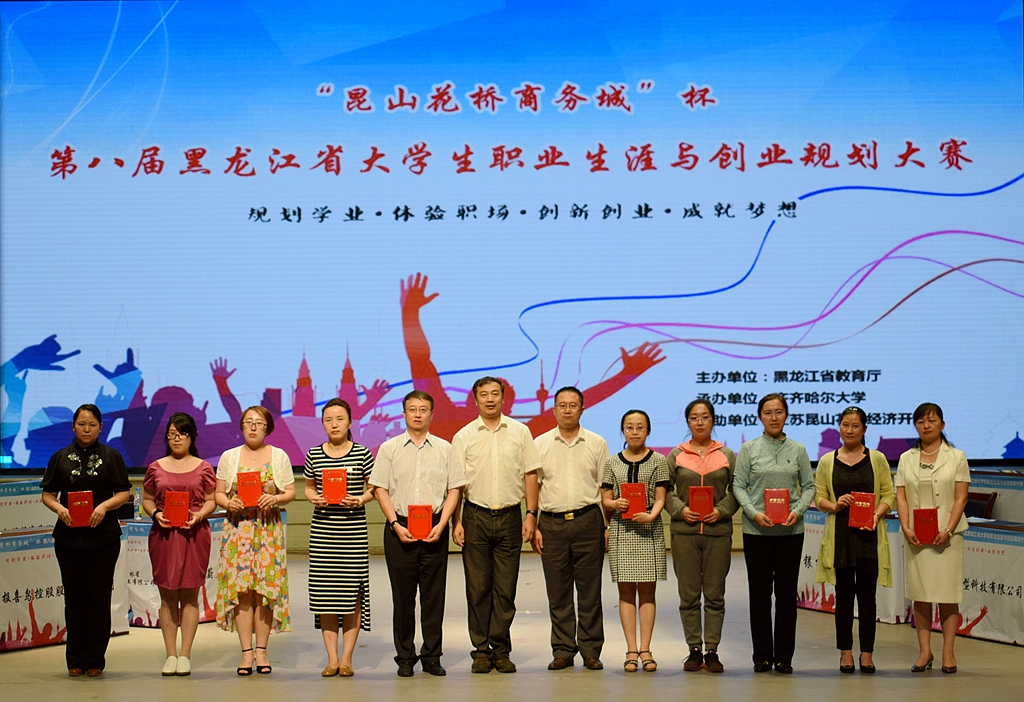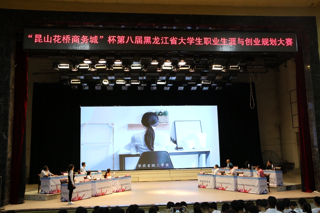 6月16日,由省教育厅主办、LETOU官网承办的“昆山花桥商务城”杯第八届黑龙江省大学生职业生涯与创业规划大赛决赛暨颁奖典礼在中区文化宫隆重举办。黑龙江省大中专毕业生就业指导中心主任张立波、副主任郭承哲,省教育厅高等教育处处长蒋鲲,江苏昆山花桥组织人事局局长岳俊、副局长李欣,省教育厅职业教育与成人教育处副处长赵立新,LETOU官网常务副校长郑喜群出席了颁奖仪式。省大中专毕业生就业指导中心相关工作人员、LETOU官网就业指导处全体工作人员,来自全省各高校的就业工作部门负责人代表、就业指导教师代表及千余名学生代表参加了大赛决赛暨颁奖典礼。