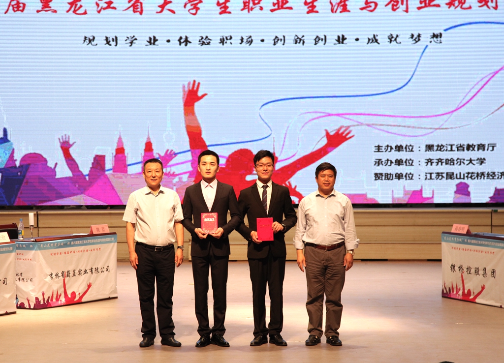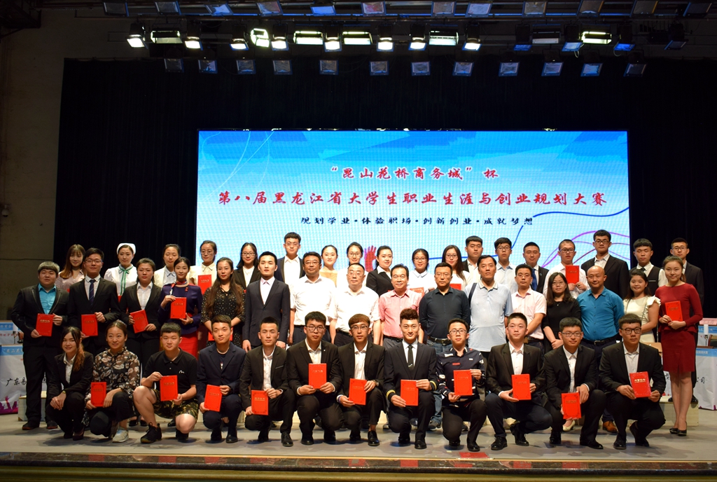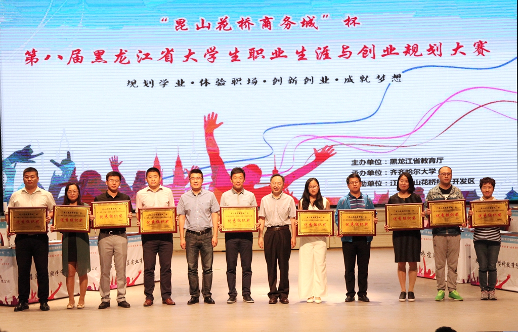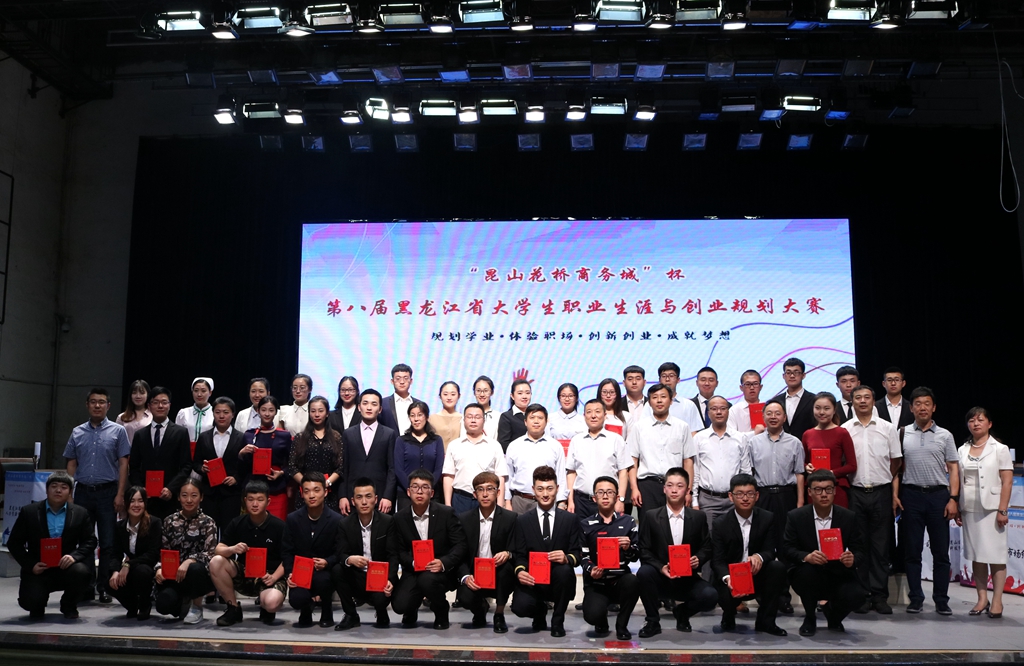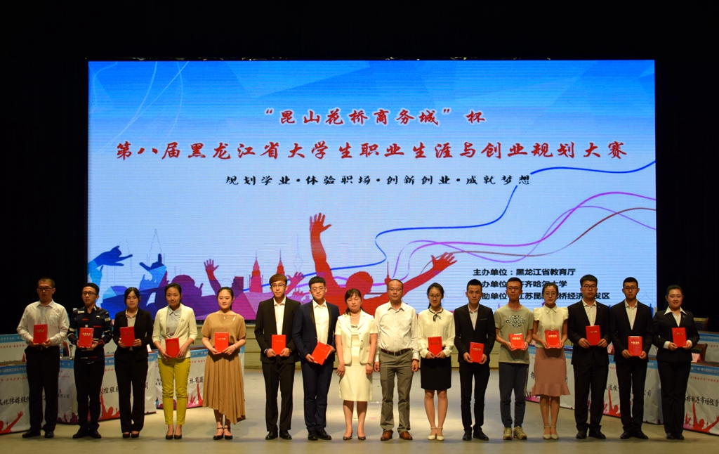 6月16日,由省教育厅主办、LETOU官网承办的“昆山花桥商务城”杯第八届黑龙江省大学生职业生涯与创业规划大赛决赛暨颁奖典礼在中区文化宫隆重举办。黑龙江省大中专毕业生就业指导中心主任张立波、副主任郭承哲,省教育厅高等教育处处长蒋鲲,江苏昆山花桥组织人事局局长岳俊、副局长李欣,省教育厅职业教育与成人教育处副处长赵立新,LETOU官网常务副校长郑喜群出席了颁奖仪式。省大中专毕业生就业指导中心相关工作人员、LETOU官网就业指导处全体工作人员,来自全省各高校的就业工作部门负责人代表、就业指导教师代表及千余名学生代表参加了大赛决赛暨颁奖典礼。