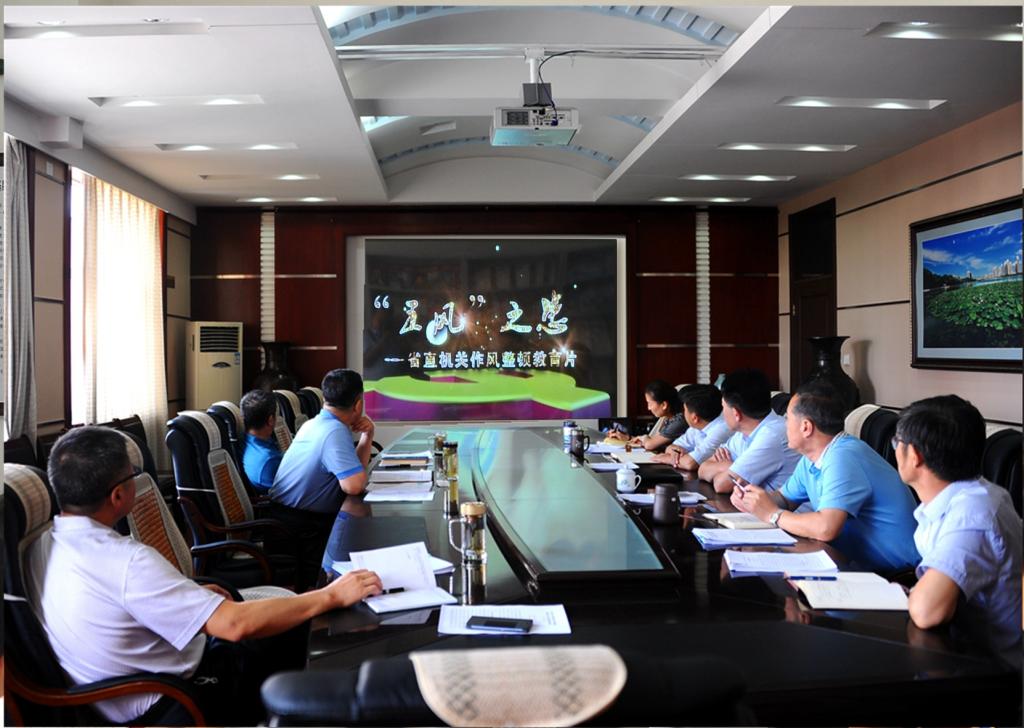 会前,校级领导班子全体成员集中观看了《“五风”之患》省直机关作风整顿教育片。