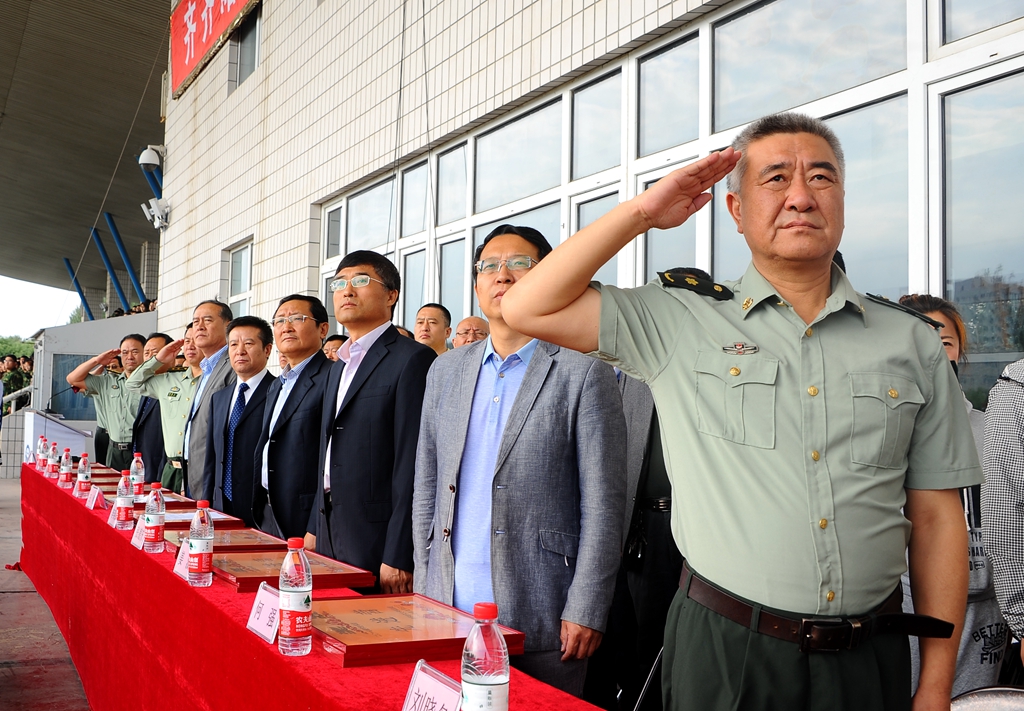 军训总结大会结束后,与会校领导及军训团司、政、后领导成员与武警齐齐哈尔支队官兵合影留念。