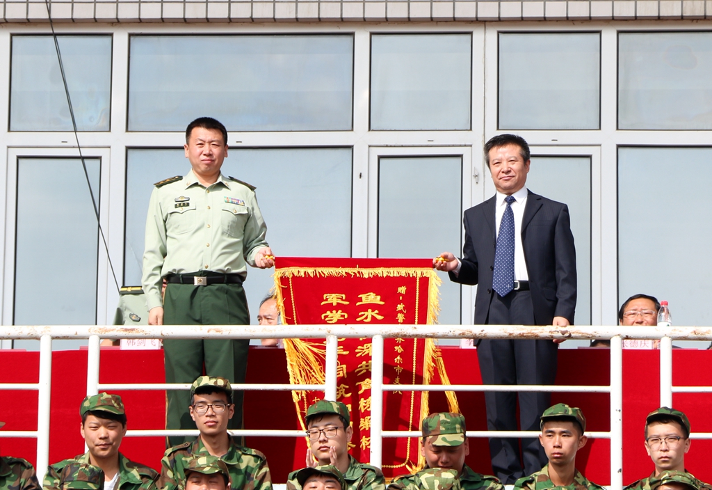 军训团团长、副校长李英杰为承训部队赠送锦旗