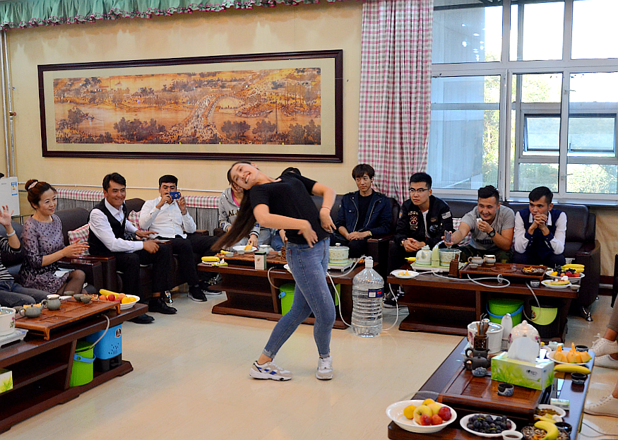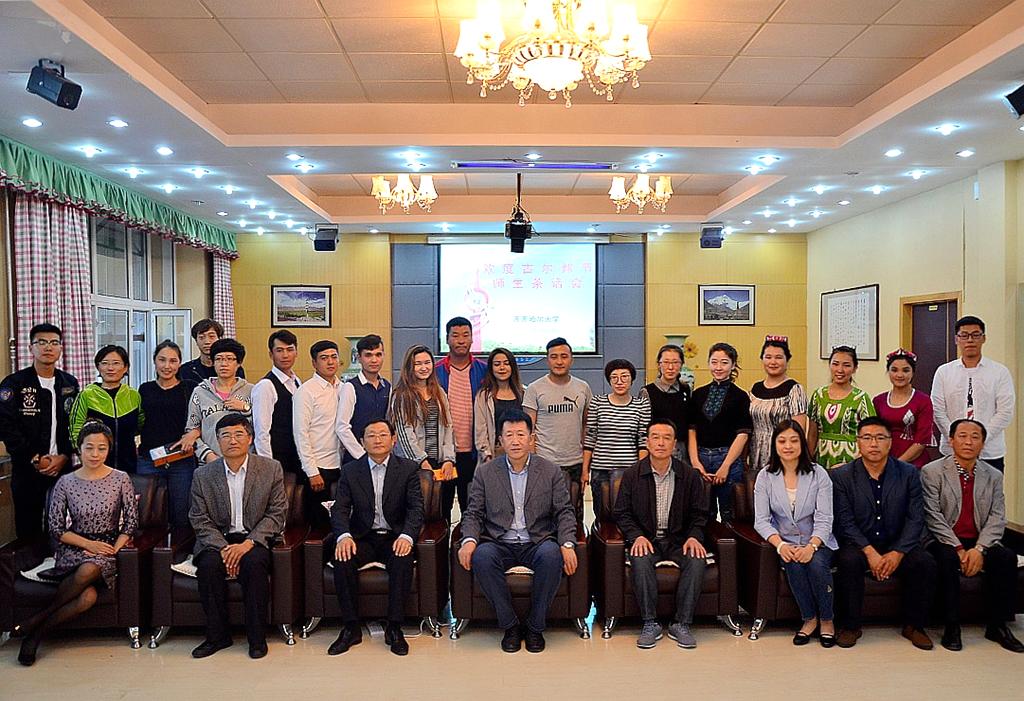 茶话会过程中,维吾尔族、哈萨克族同学为与会师生表演了富有民族特色的舞蹈,他们舞姿优美、现场热情洋溢,掌声不断。