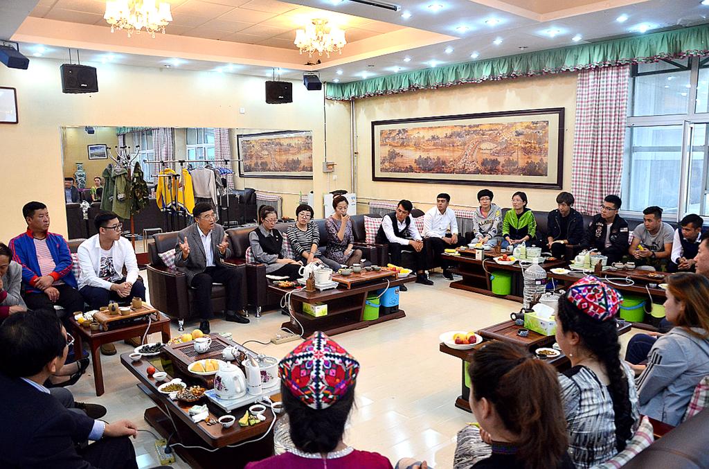 校党委书记兰景力首先询问了来自新疆维吾尔自治区的11名同学生活、饮食情况,并代表学校欢迎新疆少数民族同学们来到齐大学习生活,向他们致以节日的问候。他结合自己四年的援疆工作和生活经历,向与会老师、同学介绍了新疆少数民族的风土人情。