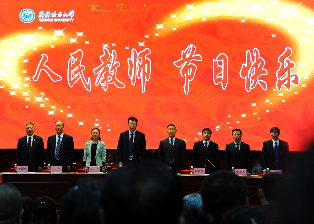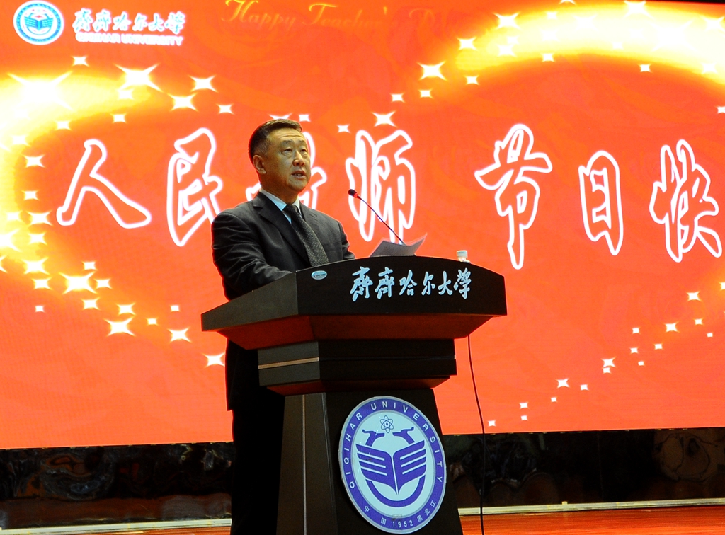 他说,在党的十九大即将召开之际,在学校六十五周年校庆来临之时,我们迎来了第三十三个教师节。这里,我谨代表学校领导班子向辛勤工作在学校各条战线、各个岗位上的全体教职员工,向为学校事业发展做出重要贡献的全体离退休老同志,致以节日的祝贺、亲切的问候和崇高的敬意!