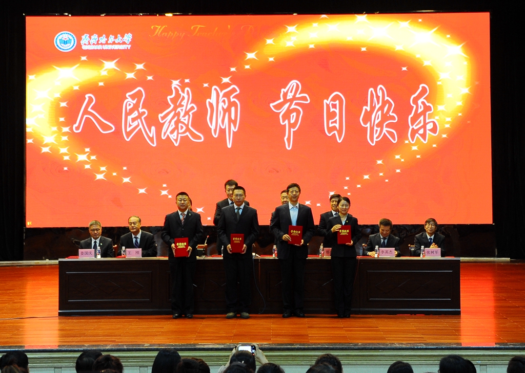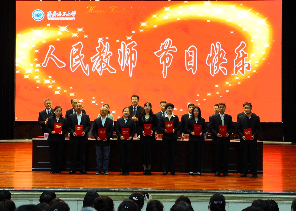 9月8日下午,学校领导与师生员工代表在中区文化宫欢聚一堂,以表彰先进、新教师入职宣誓的方式庆祝第三十三个教师节。