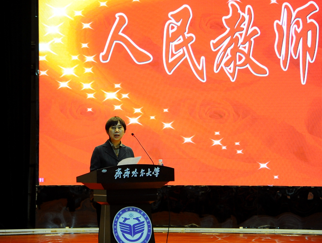 教师代表、化学与化学工程学院省级名师、省级人才梯队带头人贾丽华教授在大会上发言。她表示,教师的职责是传道、授业、解惑。教师教学中展示出的魅力,是教师一生的积累!作为教师要永远坚持学习,勤奋向上,不断提高个人修养,完善自我,积土成山、积水成河,永不停歇!振兴民族的希望在教育,振兴教育的希望在教师。建设有特色高水平教学研究型综合大学需要我们大家一起携手同心、敬业奉献、共同担当。润物育苗尽心力,不用扬鞭自奋蹄。相信,在学校党委正确领导下,全体师生共同努力,LETOU国际米兰官网的明天会更加美好!