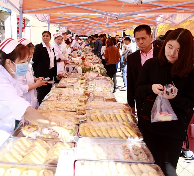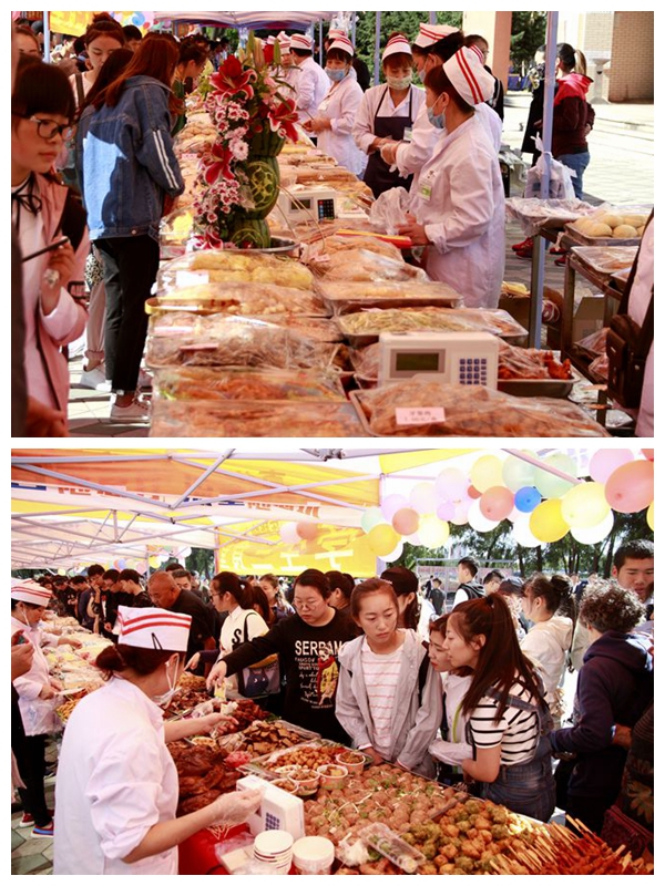 本次美食展销活动以“弘扬工匠精神 打造特色美食”为主题,是一次以弘扬餐饮文化为主,注重创新,将饮食文化与服务管理有机结合的活动,本次活动共设置美食展销、特色餐饮及饮品展销2个展区:购物中心广场为美食展区,主要展出由8个学生食堂加工制作的代表齐大伙食特色品牌的300多种主副食品,包括西式甜点、特色面食、传统糕点、熏酱类副食等精品美食;后勤管理处卫生所楼前广场为特色餐饮及饮品展区,以特色小吃、饮品和水果为主,6家证照齐全、产品质优价廉的特色餐饮商家,主要展出各类特色餐饮、特色烤串、各类果蔬及啤酒、饮料、豆浆、咖啡等预包装饮品。特色美食,受到师生和市民的热烈欢迎。据统计,在不到4个小时的时间里,展销活动成交量近8000笔,销售总额达40000多元,创造了经济效益和社会效益的双丰收。