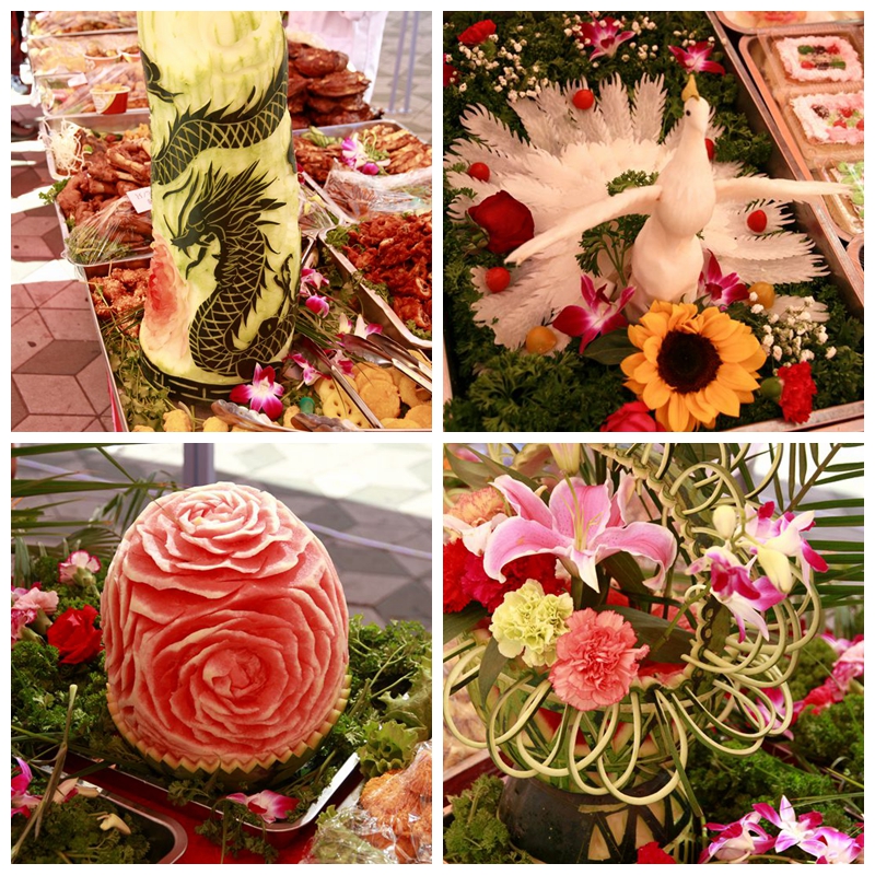 民以食为天,食以安为先。本次食品展销的食品均是各食堂亲自加工制作的,食品来源安全、可靠,饮料、水果展销商也是具有食品安全和营业资质的商家。活动现场,遮阳伞架下,来自学生一至八食堂的美食展销单位依次排列,展台上摆满了特色繁多的美食精品,各食堂师傅纷纷亮出自己的绝活,龙凤呈祥、孔雀开屏、松鹤延年、天降祥龙等精美食材雕刻让在场的人们惊叹不已。300余种主副食品芳香四溢、五味俱全:烤全羊味道十足、特色烤串儿香飘十里、红烧肉油而不腻 、炸鸡翅香脆质嫩、板粟鸡块咸甜适中、麻辣鳕鱼麻辣鲜香、糖醋排骨酸甜可口、美味香春卷鲜美甘脆、水果沙拉清爽多汁、豆沙凉糕香甜软糯……现场师生和市民纷纷拿出手机、相机进行拍照并第一时间利用微信、微博等新媒体发到朋友圈,晒美食乐事,表达愉悦心情,一时间人们纷纷在网上为学校食堂厨师的精湛厨艺点赞。美食展销,蜚声校园内外,赢得一片点赞。