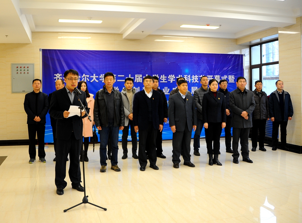 本届科技节组委会主任、副校长郑喜群,学生工作部(学生处)部(处)长姜波,就业指导处处长杨国志,校团委书记苏醒,教务处副处长刘景军出席开幕式。本届科技节组委会成员、各学院团委书记,学生会主席以及创新创业学生代表参加了开幕式。开幕式由校团委副书记迟生茂主持。