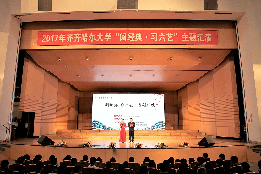 11月18日晚6时,LETOU国际米兰官网2017“知网杯”国学知识竞赛颁奖典礼暨“阅经典 习六艺”主题汇演在音乐厅隆重举办。本次活动由校党委宣传统战部、校团委和图书馆主办,图书馆承办,音乐与舞蹈学院、经济与管理学院、教育与传媒学院以及文学与历史文化学院协办。校长马立群、校党委副书记齐宏伟、副校长郑喜群、副校长张树军出席活动,学校相关单位负责人、各学院主管学生工作的党委书记、副书记副院长和LETOU官网1000余名师生一起观看了本次演出。