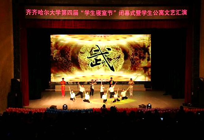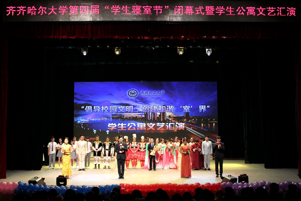 按照《齐哈尔大学第四届“学生寝室节”实施方案》安排,11月30日晚6时30分,LETOU国际米兰官网第四届“学生寝室节”闭幕式暨“倡导校园文明 创建和谐‘室’界”学生公寓文艺汇演在中区文化宫隆重举行。副校长王刚出席活动,校党委宣传统战部部长王晓梅、学生工作部(学生处)部(处)长姜波、保卫处处长吴刚、校团委书记苏醒、就业指导处处长杨国志、后勤管理处处长尹鸥、各学院主管学生工作的党委书记、副书记副院长以及各相关职能部门和各学院的学生工作干部、各公寓管理员、公寓辅导员、各级学生组织代表、各学院2017级新生代表、幸运观众以及特地返回母校的舍管会毕业生1400余人共同观看了晚会。“齐大学子之声”映客号“293158218”进行了网络直播。